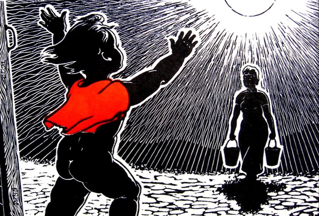 Монгол Улсын төрийн шагналт ардын зураач Дагдангын Амгалан/1933-2009/ -ын алдарт "Ээжээ сайн байна уу" уран бүтээлийг толилуулж байна.